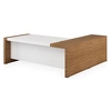 Легкие, ясные линии письменных столов коллекции Kyu DM шпон гармонично сочетаются с цветом и фактурой материала – шпоном из древесины зебрано. Благодаря особой обработке древесины - технике нанесения лака с «открытыми порами» - естественные цвета зебрано радуют глаз необыкновенной яркостью и красотой. Особый шик дизайну столов придает использование белой глянцевой покраски на столешнице и фасаде тумбы. Лучшим выбором для сотрудников, ведущих переговоры, будет письменный стол с брифинг-приставкой. Легкая мобильная приставка увеличивает рабочее пространство, делая общение сотрудника и клиента непринужденным и продуктивным.