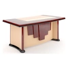 Столешницы, лицевые и боковые поверхности столов имеют вставки из Экокожи с прострочкой. Толщина кожи - 2 мм.